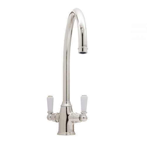 The Amesbury in polished nickel is one of Bidbury & Co.'s most popular models. A beautifully designed twin lever kitchen tap with elegant porcelain handles and proportions to sit comfortably in even the largest and most grand of kitchen designs. High quality construction with long-lasting components, the Amesbury tap will not only be a main focal point in your kitchen, it will also stand up to the rigours of a busy working kitchen for many years to come.