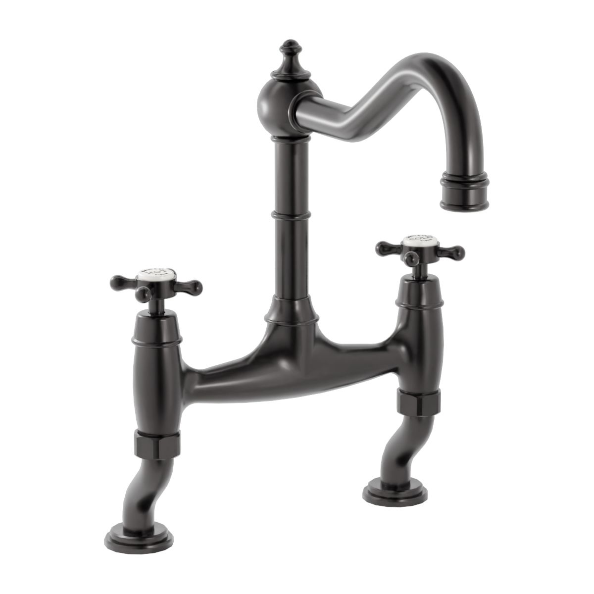 Bidbury and Co Fairford Blackened Brass Twin Lever Bridge Tap with Crosshead Handles