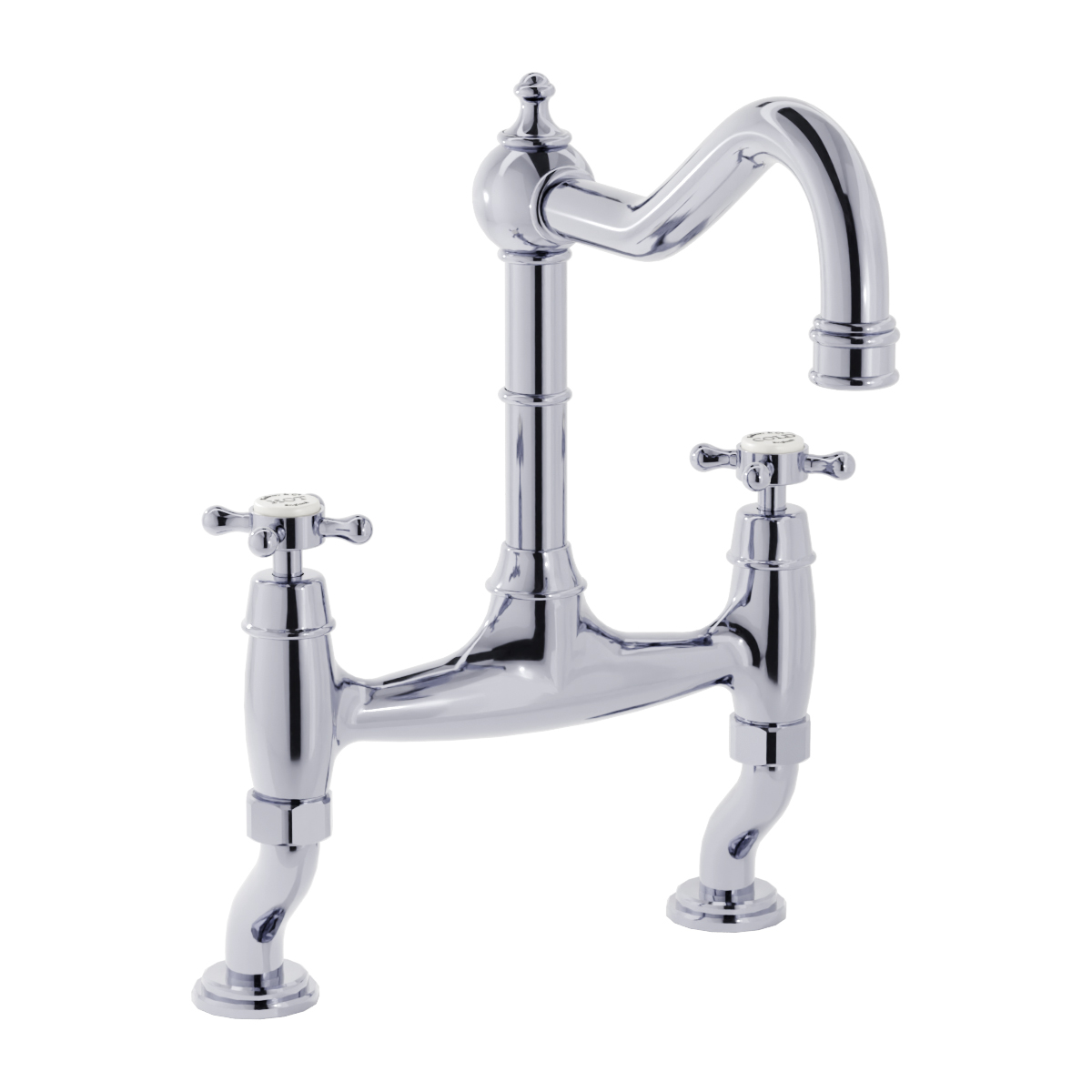 A classically designed twin control kitchen bridge tap with stunning traditional features