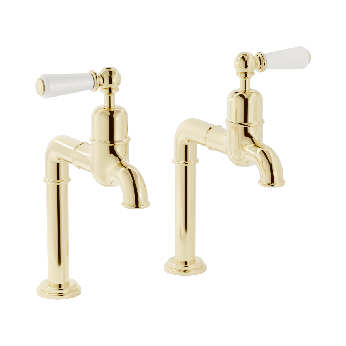 Bidbury and Co Hanford Polished Gold Bibcock Taps with Ceramic Lever Handles