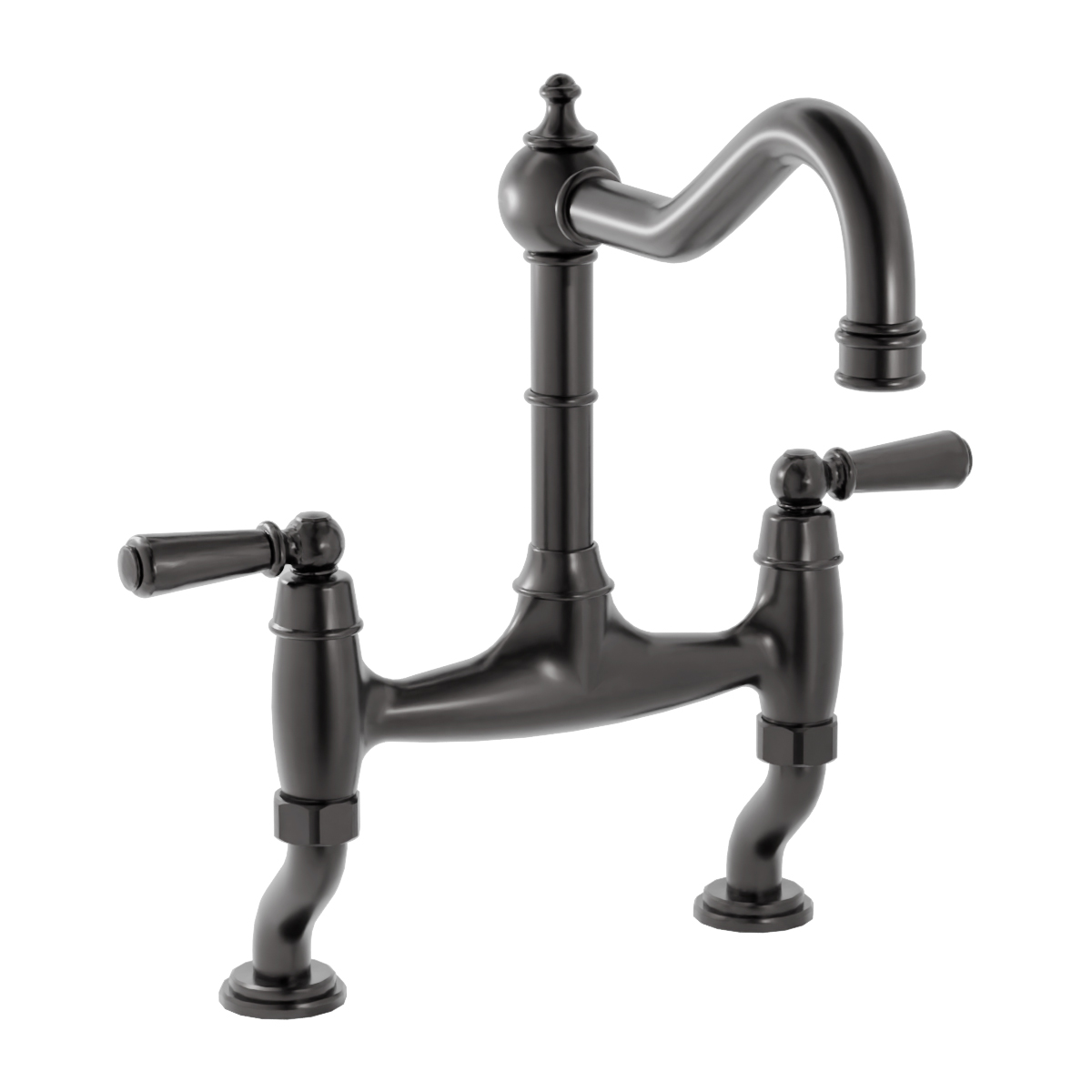 Bidbury and Co Henbury Twin Lever Blackened Brass Bridge Tap with Metal Handles