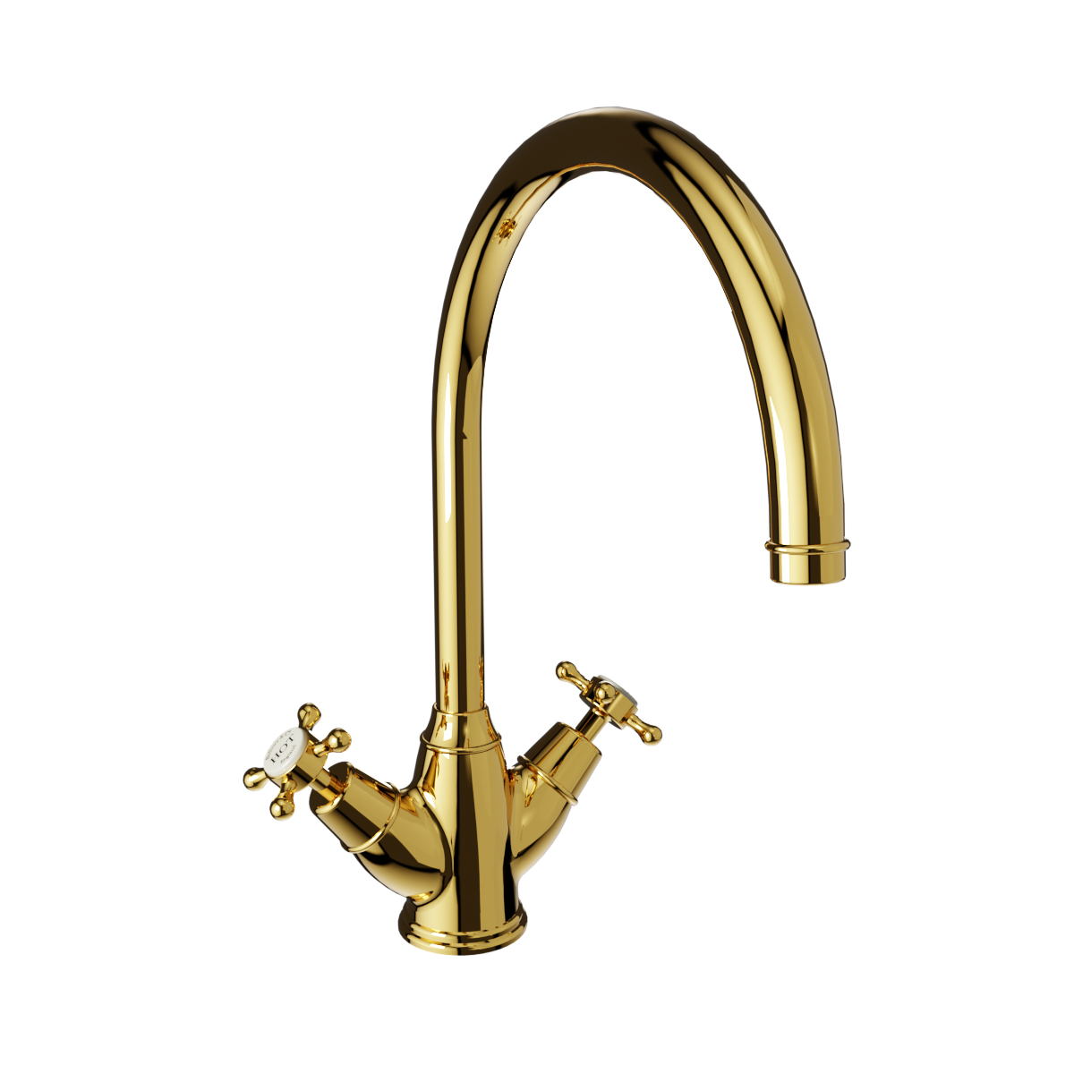Bidbury and Co Yorkley Polished Brass Twin Lever Monobloc Tap with Crosshead Handles