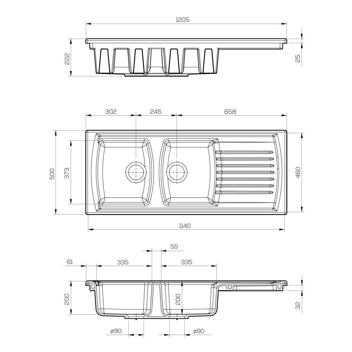 - Width: 1205mm