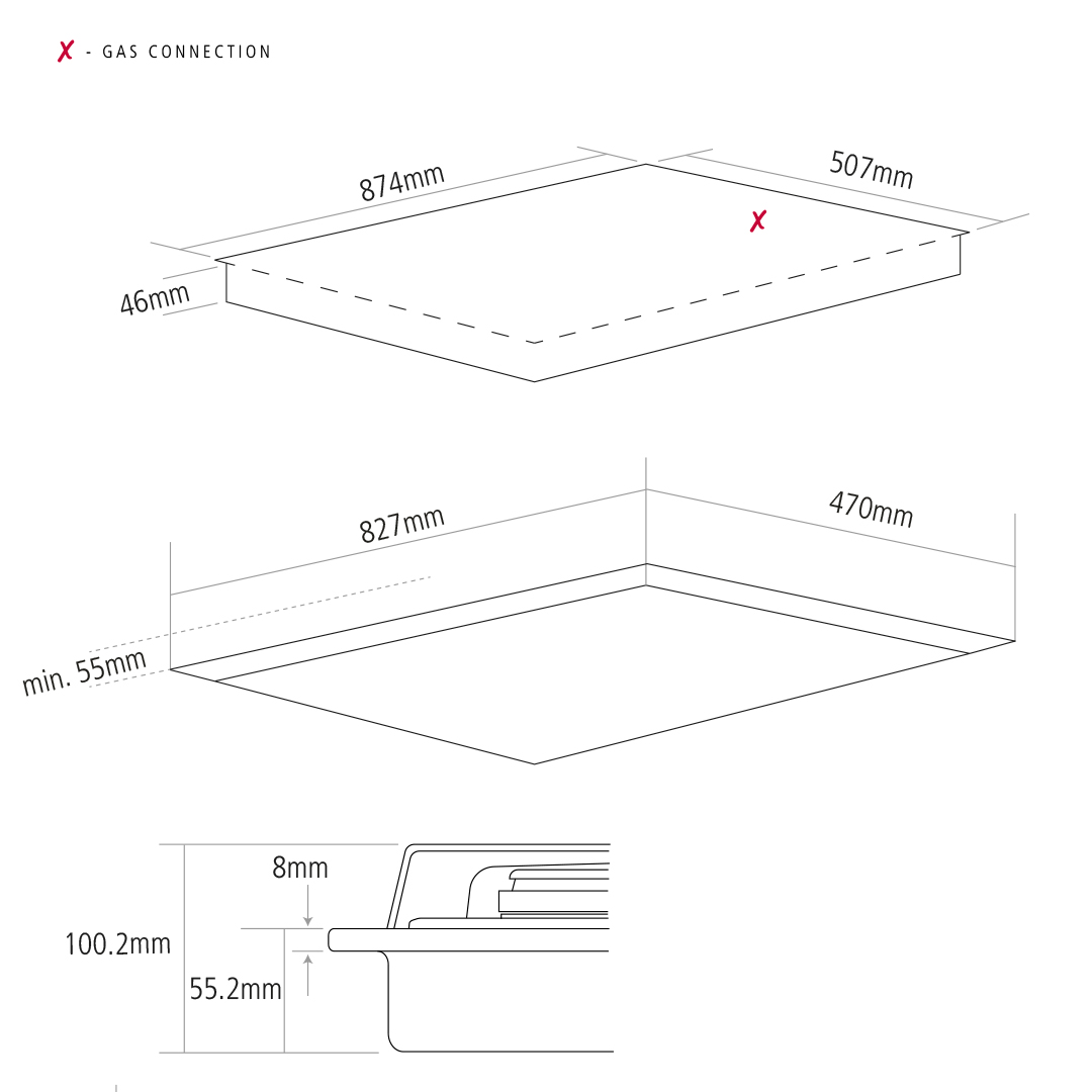 Caple C7895G 87cm Gas On Glass 5 Burner Hob
