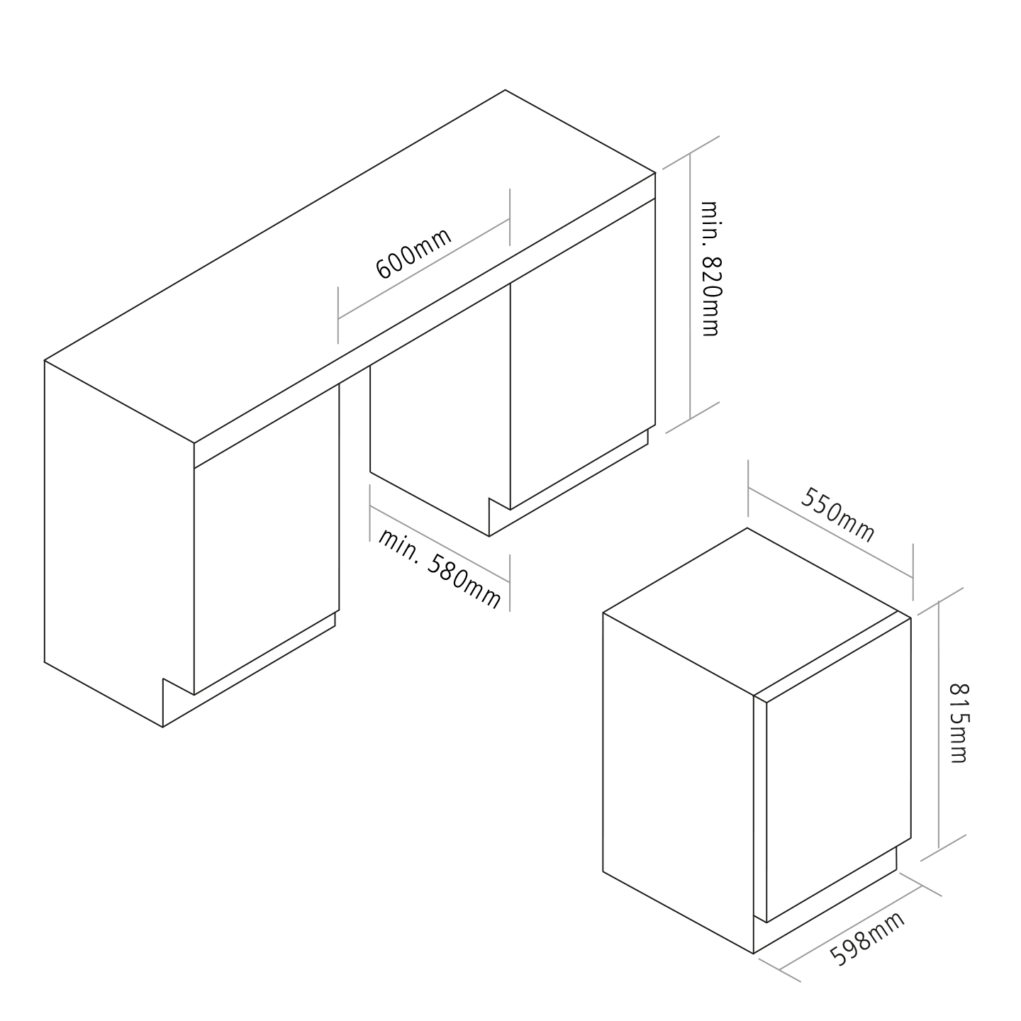- Depth: 550mm