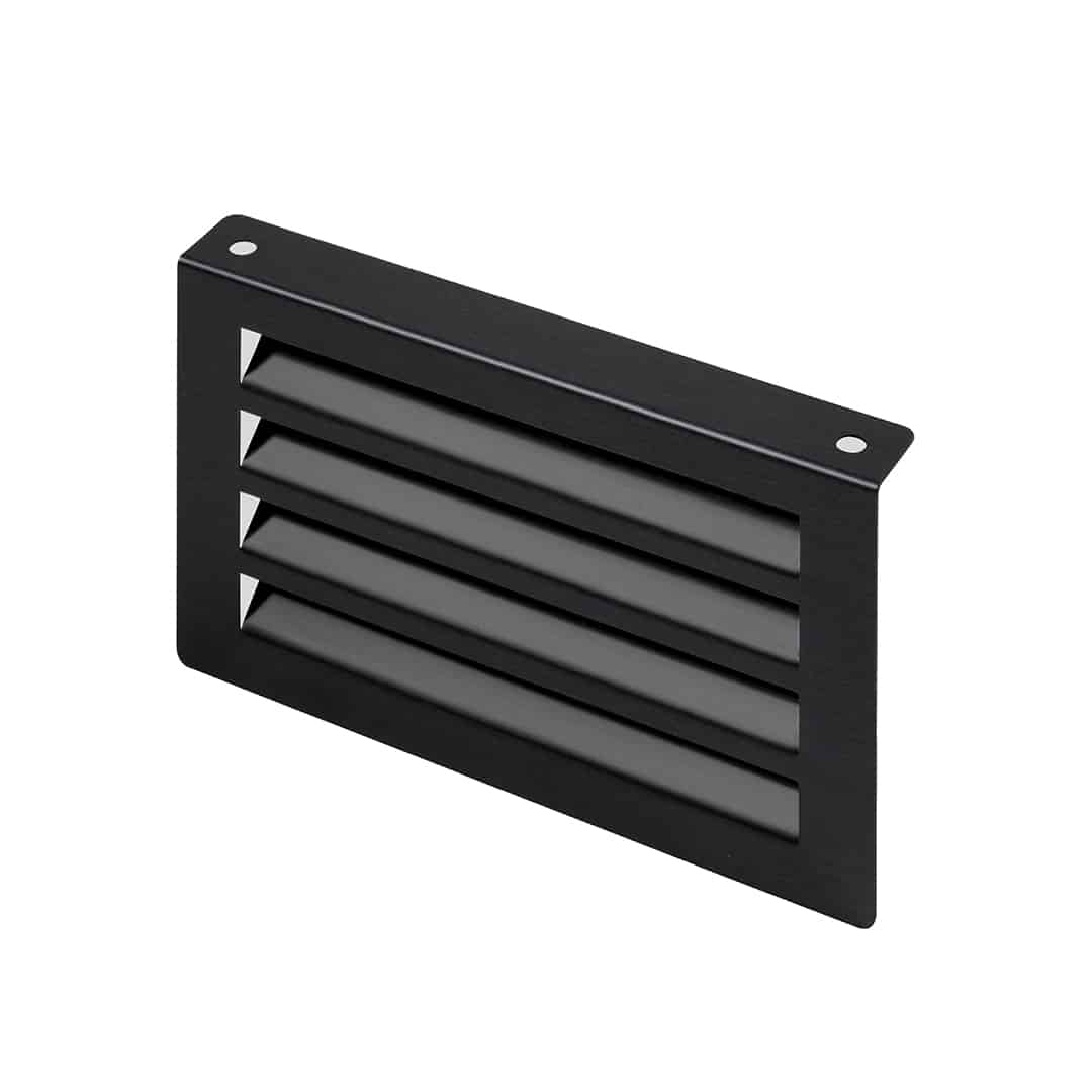 - Black steel universal inset plinth grille