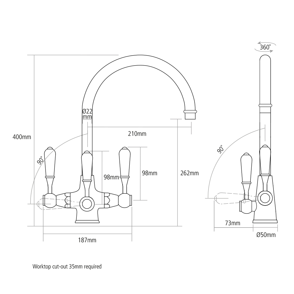 Caple Shaftsbury Puriti Triple Lever Water Filter Tap