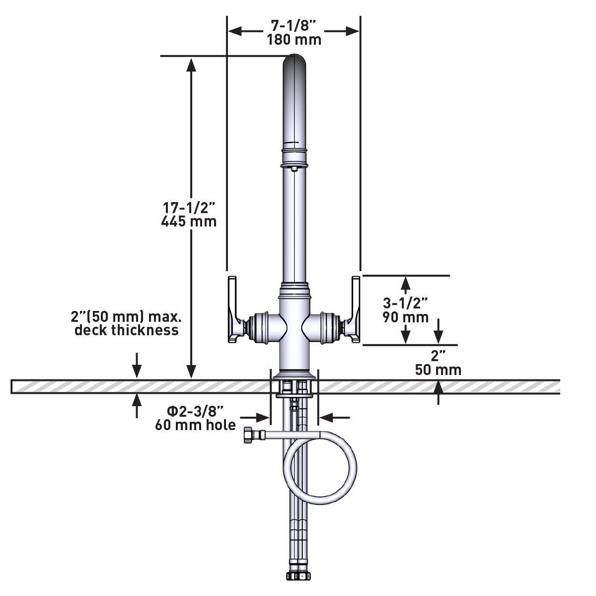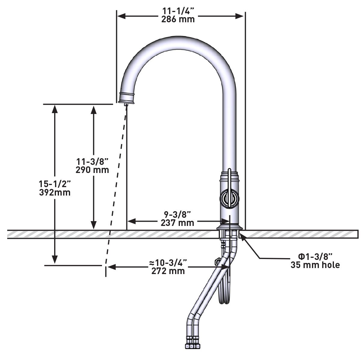 All Perrin and Rowe kitchen taps are supplied with full fixing kits which include the supply tails. As they are manufactured in the UK, each Perrin and Rowe kitchen tap will connect to standard 15mm supplies. The hole size is a standard 35mm and is therefore suitable for almost all Kitchen sinks and worktops.