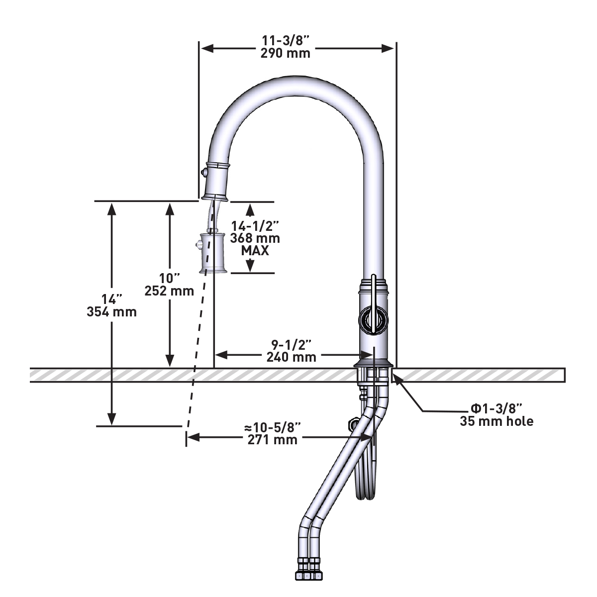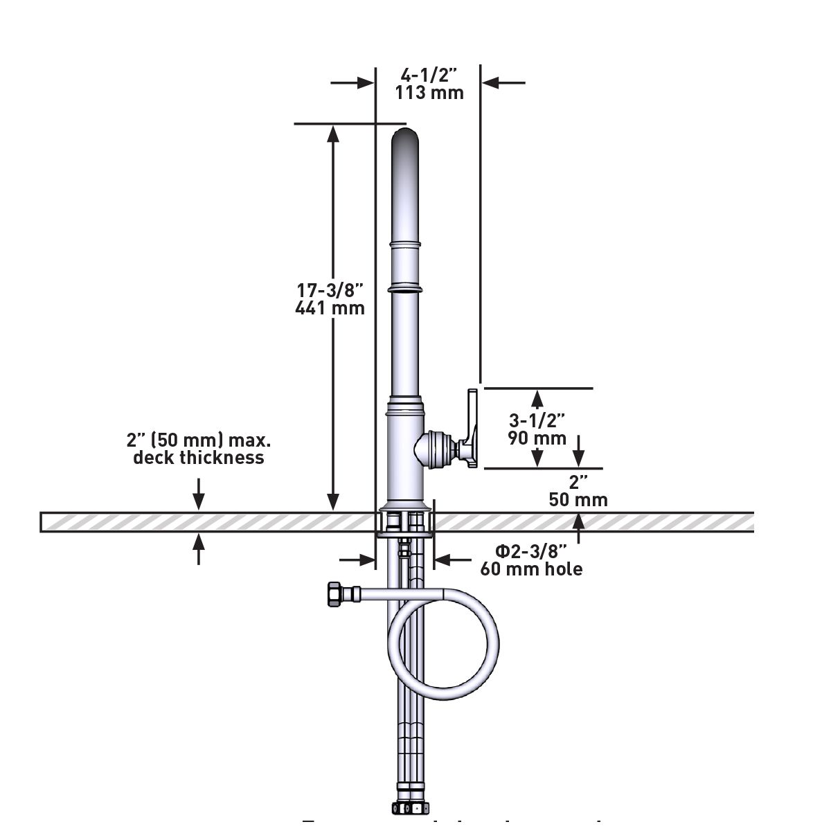 All Perrin and Rowe kitchen taps are supplied with full fixing kits which include the supply tails. As they are manufactured in the UK, each Perrin and Rowe kitchen tap will connect to standard 15mm supplies. The hole size is a standard 35mm and is therefore suitable for almost all Kitchen sinks and worktops.