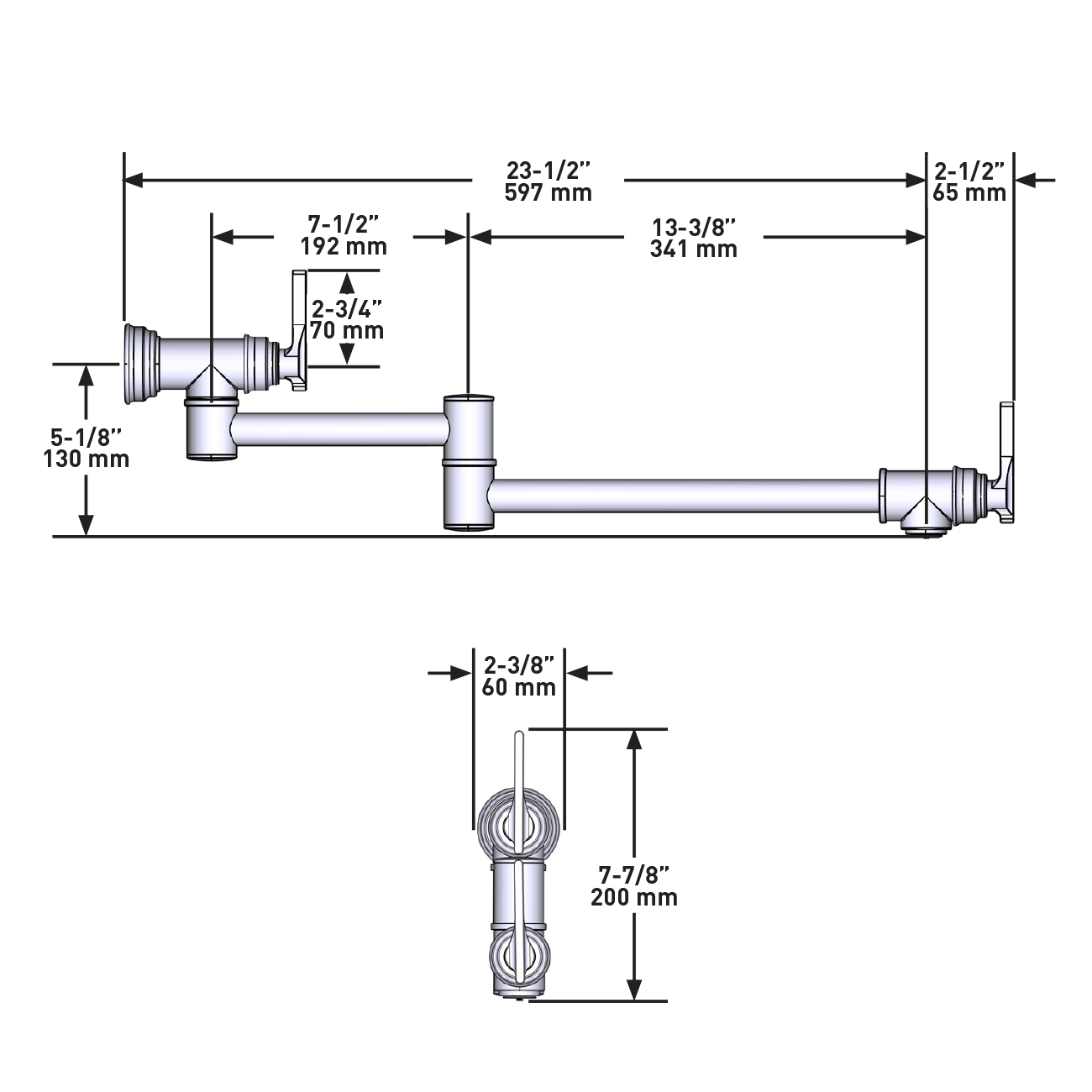 • Dual handle shut-offs, one at the wall and one at the outlet