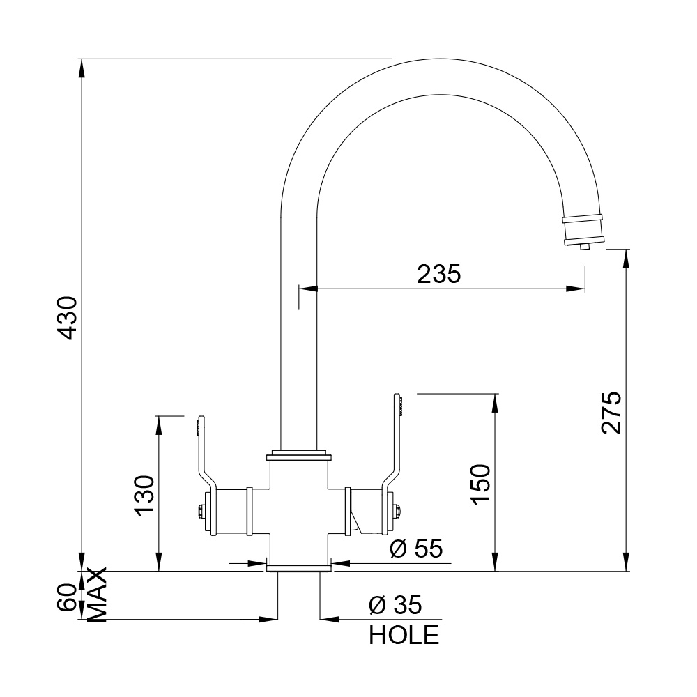 All Perrin and Rowe kitchen taps are supplied with full fixing kits which include the supply tails.  As they are manufactured in the UK, each Perrin and Rowe kitchen tap will connect to standard 15mm supplies.  The hole size is a standard 35mm and is therefore suitable for almost all Kitchen sinks and worktops.