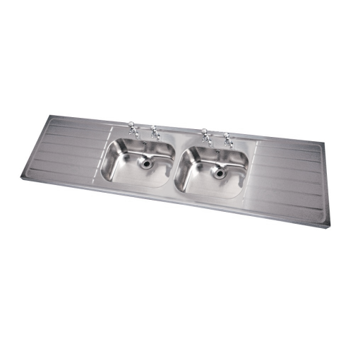 Pland Jersey HTM64 2400mm Double Bowl Double Drainer Sit On Sink Top