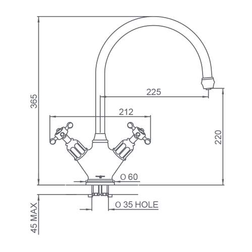 - Spout Reach: 220mm